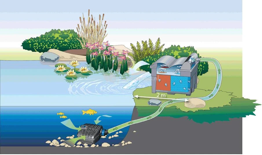 - Gegarandeerd helder en gezond vijverwater door een biologisch-mechanische reiniging en effectieve UVC-techniek