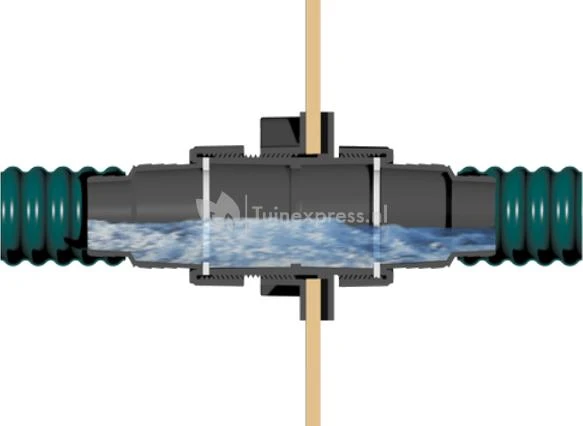 Wand- en foliedoorvoer voor het doorvoeren van water of electra kabels vanuit de vijver.