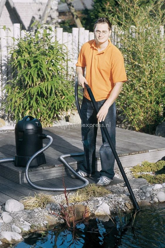 Verwijder slib, algen en bladeren effectief uit uw vijver of zwembad met deze Pondomatic vijverstofzuiger van Pontec! Na verloop van tijd kan er in uw vijver of zwembad een dikke laag vuil en algen gaan ontstaan. Om een goed leefklimaat voor uw planten en vissen in uw vijver te behouden en voor de nodige onderhoud van uw vijver/zwembad is zo nu en dan een goede schoonmaak nodig. Deze vijverstofzuiger helpt u daarbij en zorgt ervoor dat de overtollige plantenresten en slib uit uw vijver worden verwijderd!