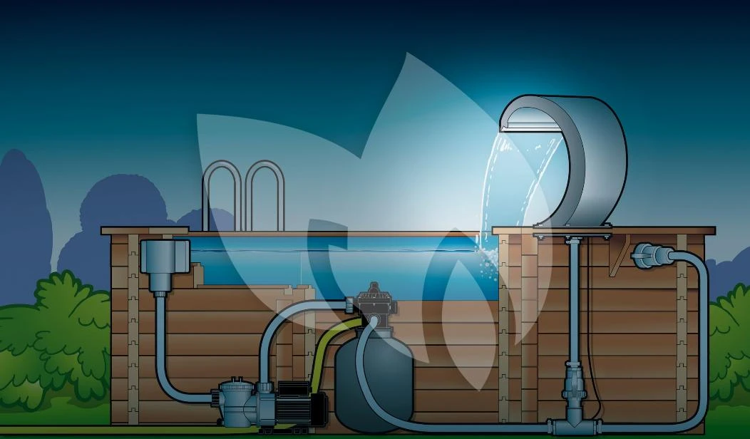 De Mamba is een waterval gemaakt van roestvrij staal dat bestand is tegen chloor en zout water. Deze elegante, moderne waterval heeft een hoogte van 54 centimeter en geeft een gelijkmatige straal. De waterval wordt geleverd inclusief montagemateriaal en toebehoren voor het aansluiten op een vijverpomp of een al bestaand zwembadfiltersysteem (allebei niet inbegrepen). Kortom: de waterval Mamba is een prachtige aanwinst die zorgt voor bijzondere effecten zonder een ingewikkelde installatie!