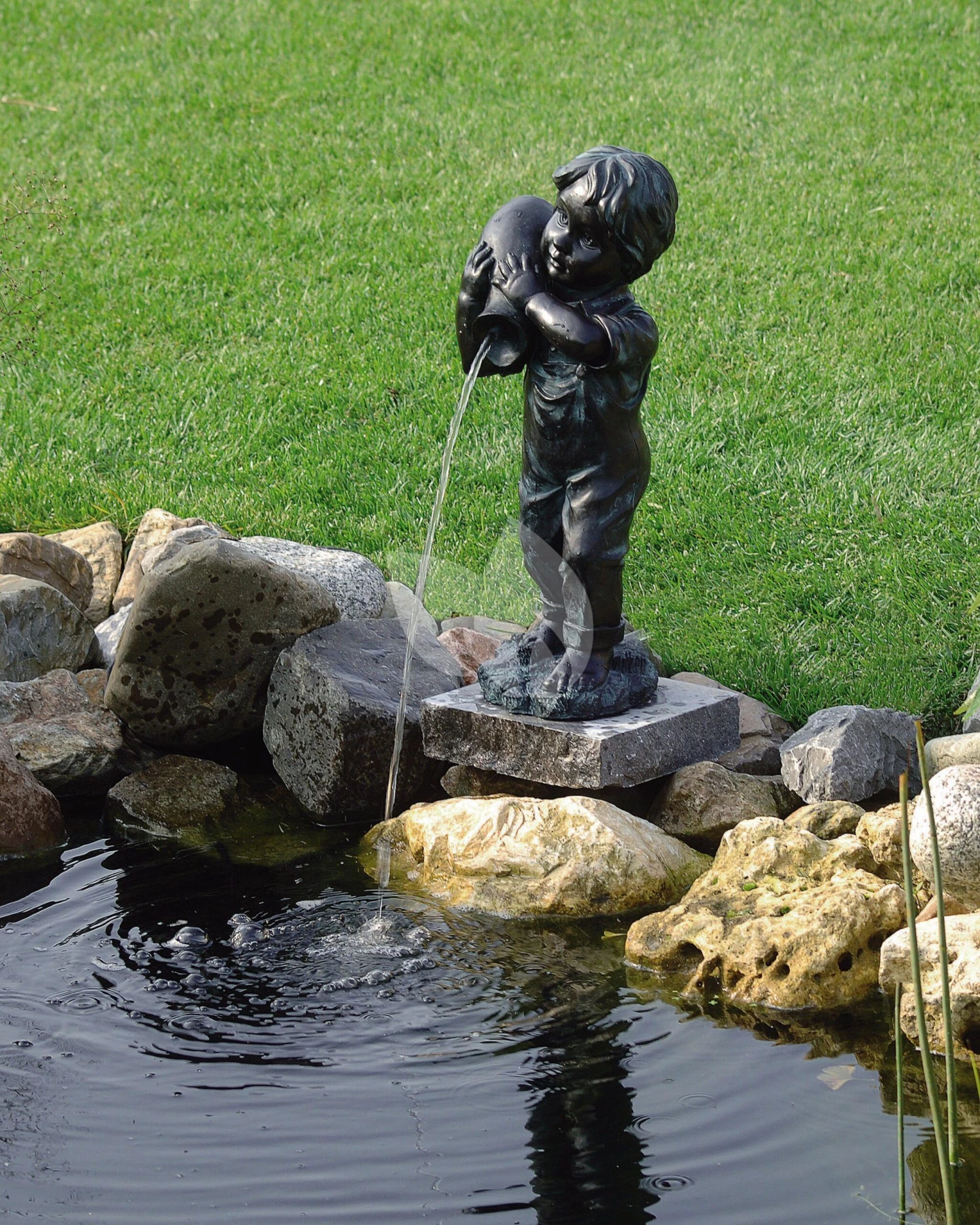 Het spuitfiguur Yannick is een leuke accessoire aan de rand van uw vijver. Het waterornament betreft een jongen met een watervaas in zijn handen waar het water uitstroomt richting uw vijver. Een spuitfiguur bij uw vijver zorgt voor meer leven en sfeer in en rondom uw vijver en heeft een grote aantrekkingskracht op verschillende vogeltjes. Het spuitfiguur is gemaakt van polyresin waardoor hij gemakkelijk geplaatst kan worden door zijn lichte gewicht. Polyresin is een kunsthars en is bestand tegen alle weersinvloeden, zo kunt u jarenlang genieten van dit leuke spuitfiguur!
