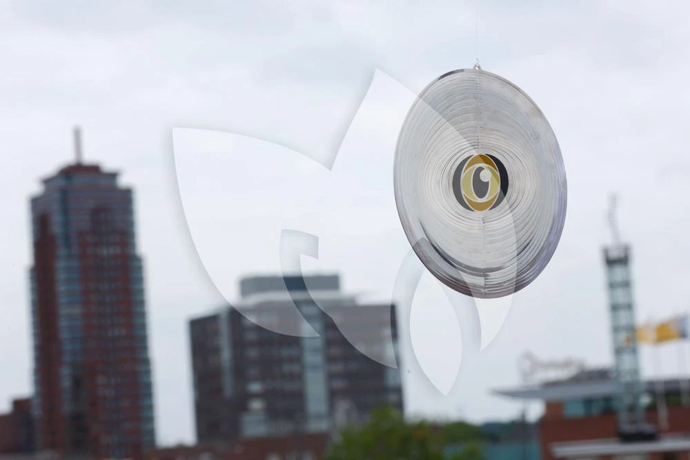 De Heron Spinner werkt in principe hetzelfde als bij raketlanceringen om vogels weg te houden. De Heron Stop Spinner beschikt over een oog van een roofvogel en spiegelend materiaal wat licht reflecteert. Door de draaiende hanger vlakbij de de vijverrand te plaatsen zullen reigers en andere ongeweste vogels schrikken, wegvliegen en ook niet snel meer terugkomen. U kunt de Heron Stop Spinner ook gebruiken voor het weggjagen van duiven op uw balkon. De Heron Stop Spinner is gemaakt van spiegelend RVS en roteert door de wind. Voor een versterkend effect kunt u meerdere spinners plaatsen.