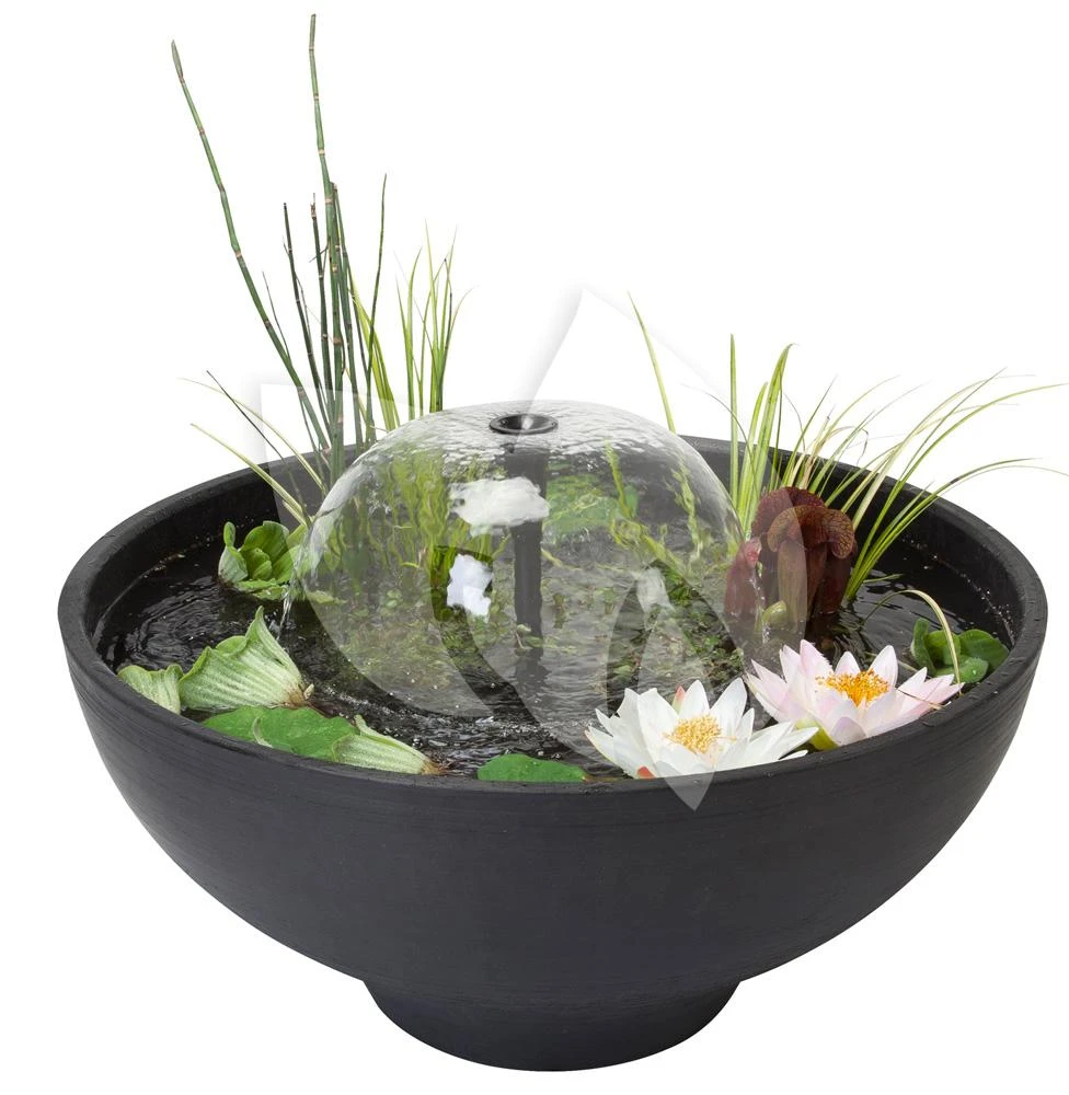 De Fountain Pond is gemaakt van licht materiaal, polystone, waardoor u de vijver moeiteloos kunt verplaatsen. De terrasvijver wordt geleverd met fonteinpomp en plantmand waarmee u de vijver kunt vullen. Een aanrader: moerasplanten maken de terrasvijver echt tot een sfeervol element in uw tuin of huis! Voor het houden van helder en algenvrij water zijn zuurstofplanten een goede optie. De terrasvijver is ook beschikbaar in een kleiner formaat en in een vierkante uitvoering.