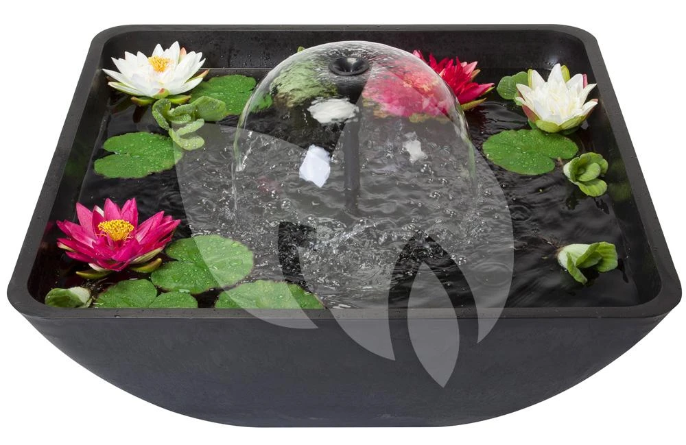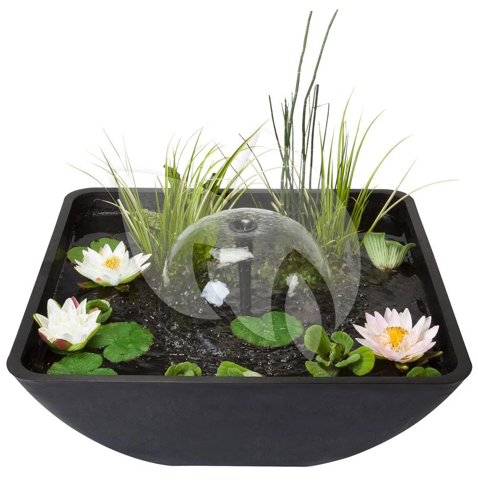 De Fountain Pond is gemaakt van licht materiaal, polystone, waardoor u de vijver moeiteloos kunt verplaatsen. De terrasvijver wordt geleverd met fonteinpomp en plantmand waarmee u de vijver kunt vullen. Een aanrader: moerasplanten maken de terrasvijver echt tot een sfeervol element in uw tuin of huis! Voor het houden van helder en algenvrij water zijn zuurstofplanten een goede optie. De terrasvijver is ook beschikbaar in een kleiner formaat en in een ronde uitvoering.